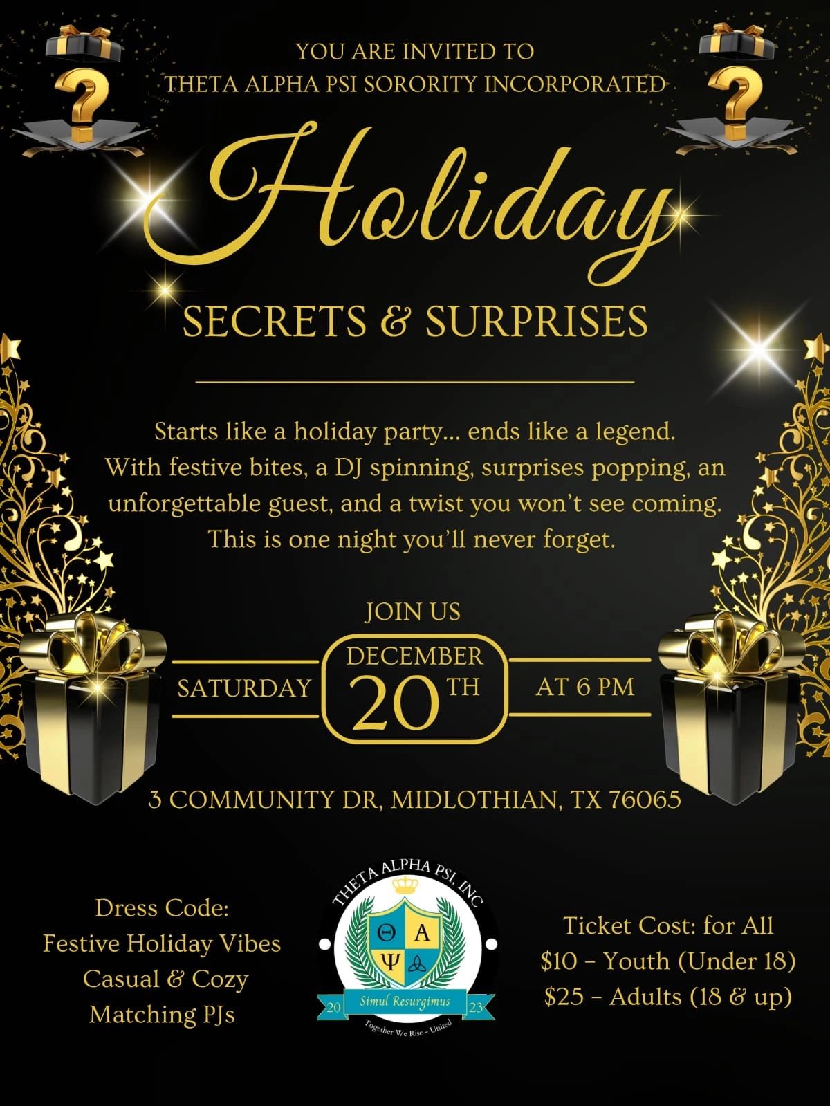 Join us as we celebrate the Holidays! Expect energy, excitement and a night to remember!
